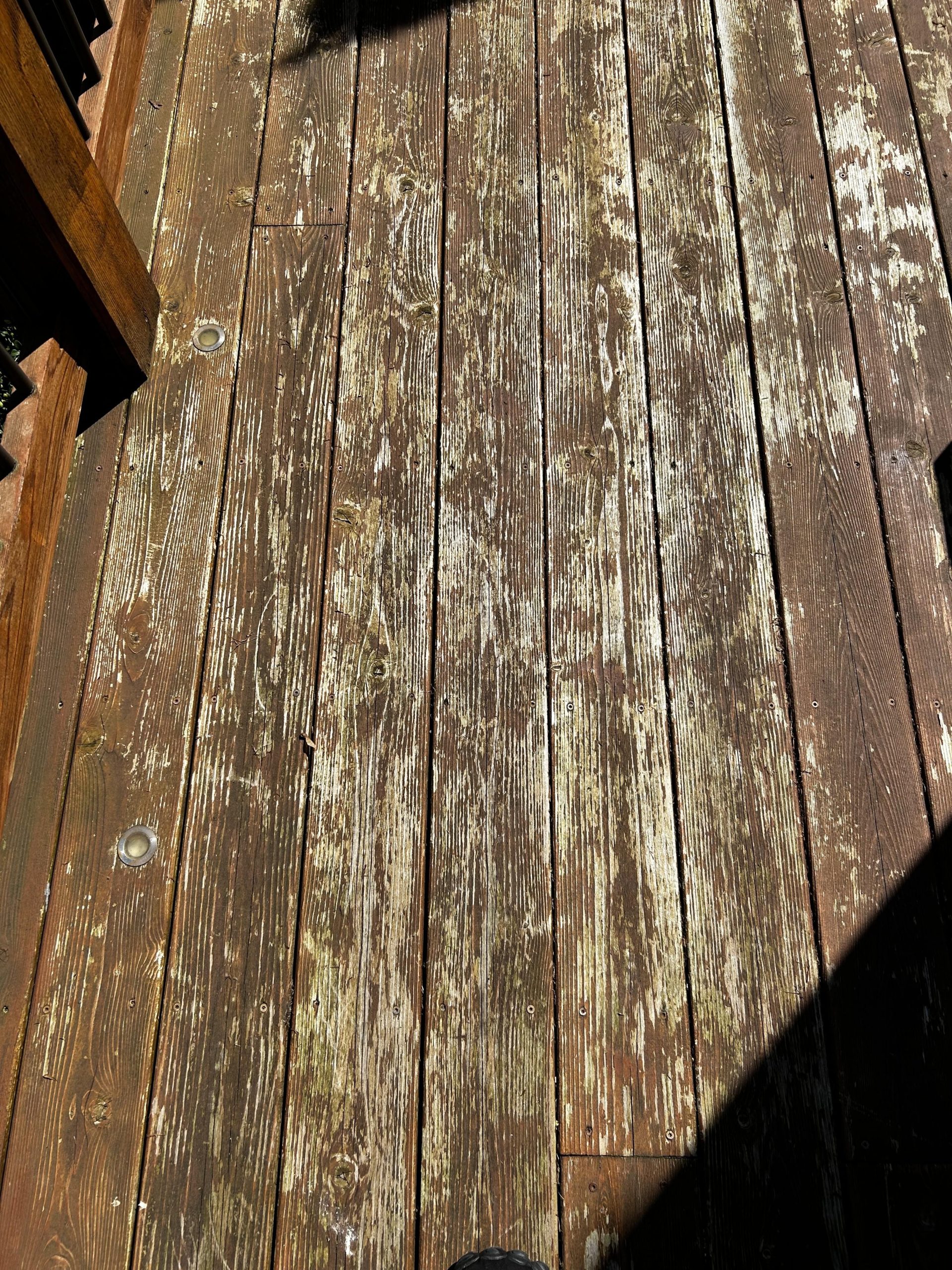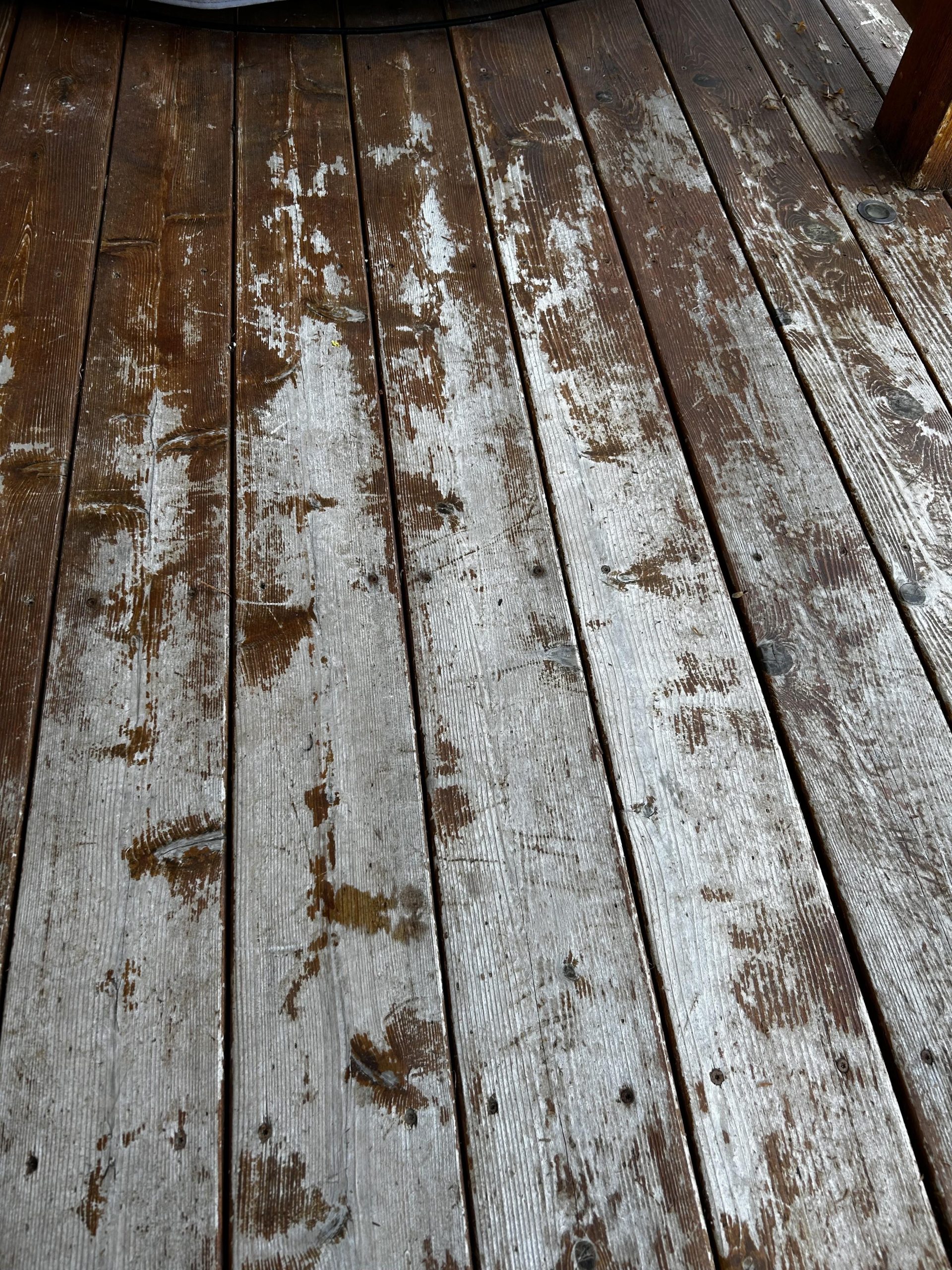 We’ve found at least 3 layers of paint/stain on the deck: